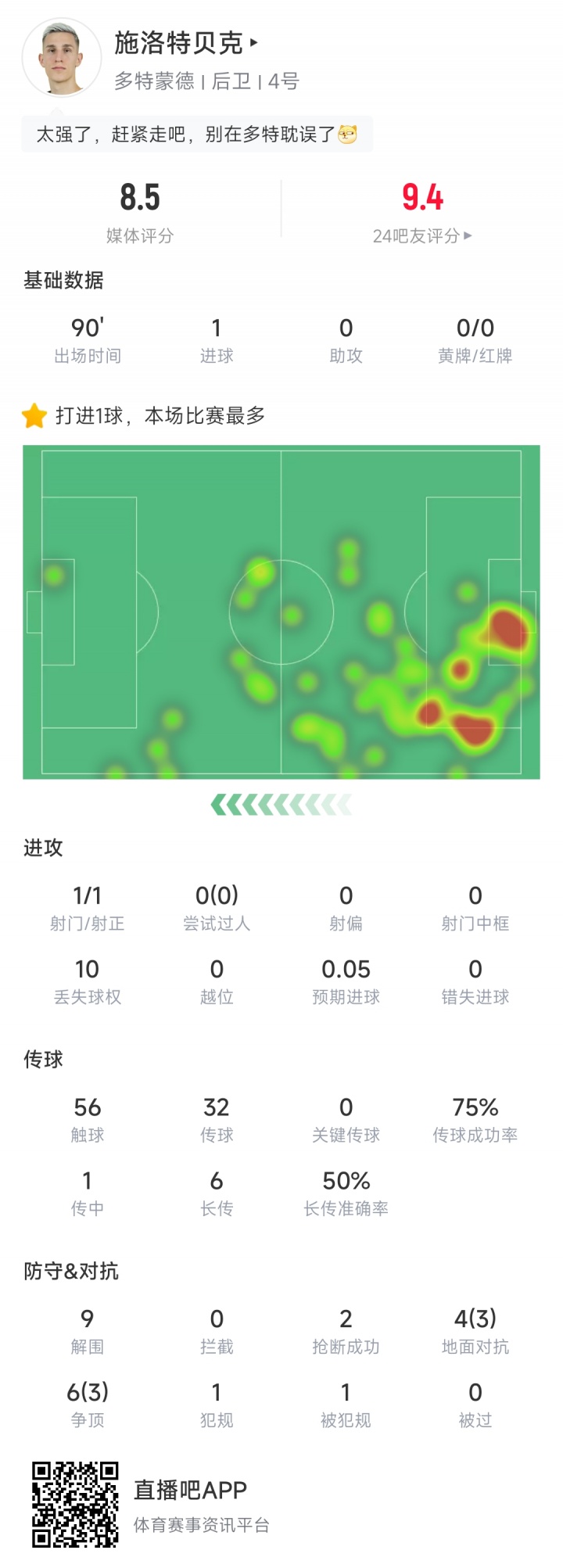 第19轮评选结果出炉,施洛特贝克全场打进1球送出9次解围,攻防两端完美发挥,帮助多特3-0完胜柏林联合,当选【X小红书德甲第19轮最佳球员】!